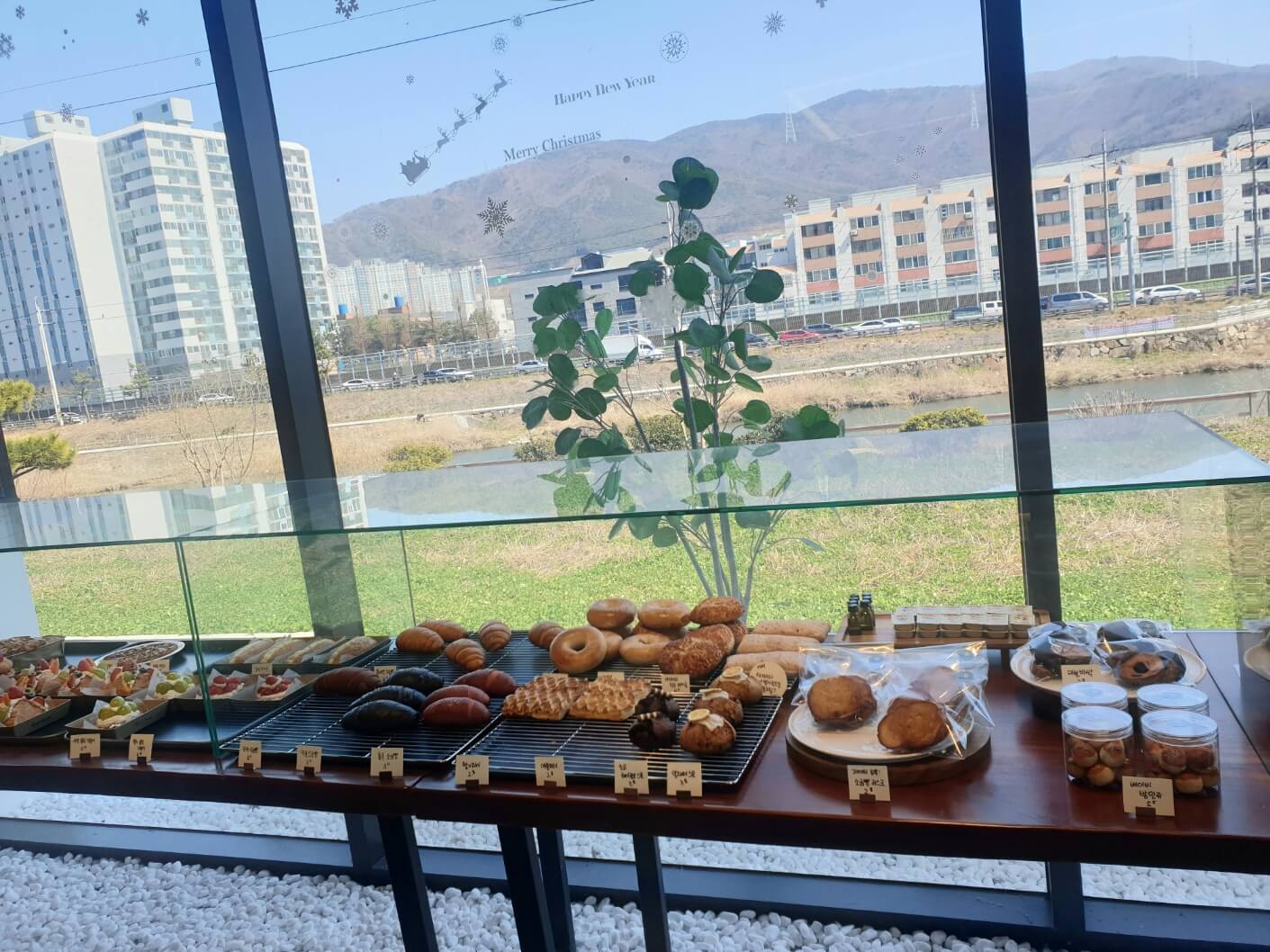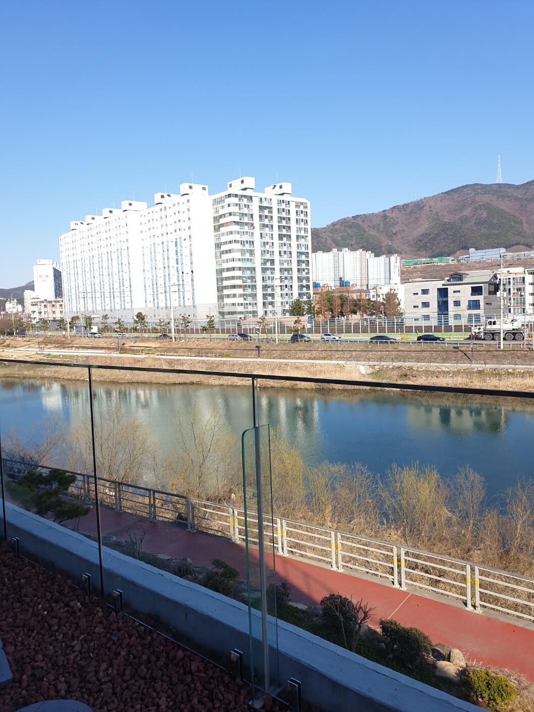 양산천을 통창으로 바라보는 시원한 뷰 한번 보시죠. 아직은 봄이 오지 않아 꽃이 없어서 살짝 아쉽긴 했는데, 4월이 되면 더 아름다운 뷰에 취할 수 있을 것 같습니다.