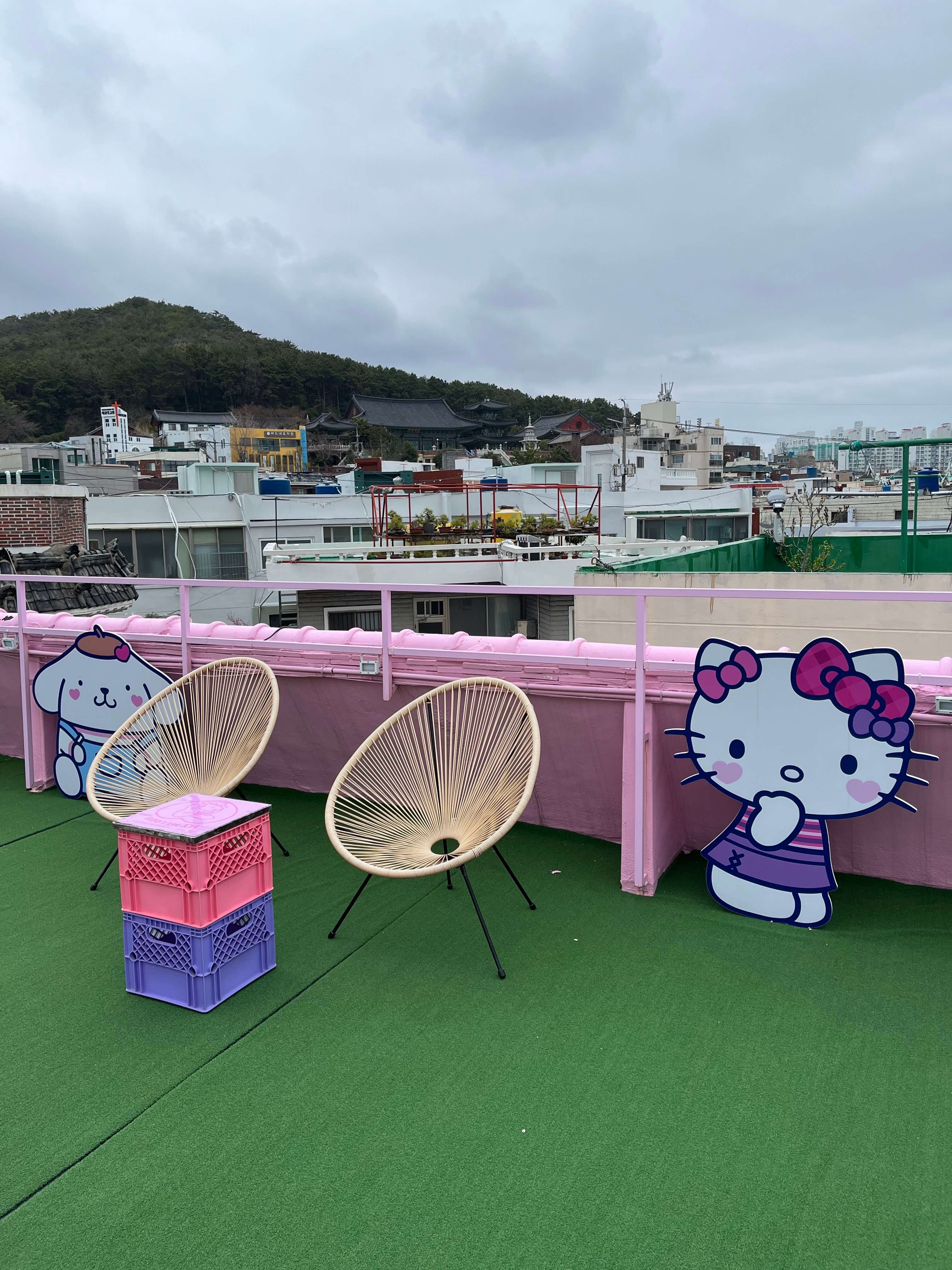 여긴 3층 루프탑입니다. 이곳 또한 이쁜 박스를 사용하여 특성 있게 잘 꾸며놓았더라고요. 사진에 다 담진 못했지만 날씨가 좋은 날에는 꼭 한번 올라가서 사랑스러운 산리오 캐릭터들과 행복한 시간 가져보시기 바랍니다.