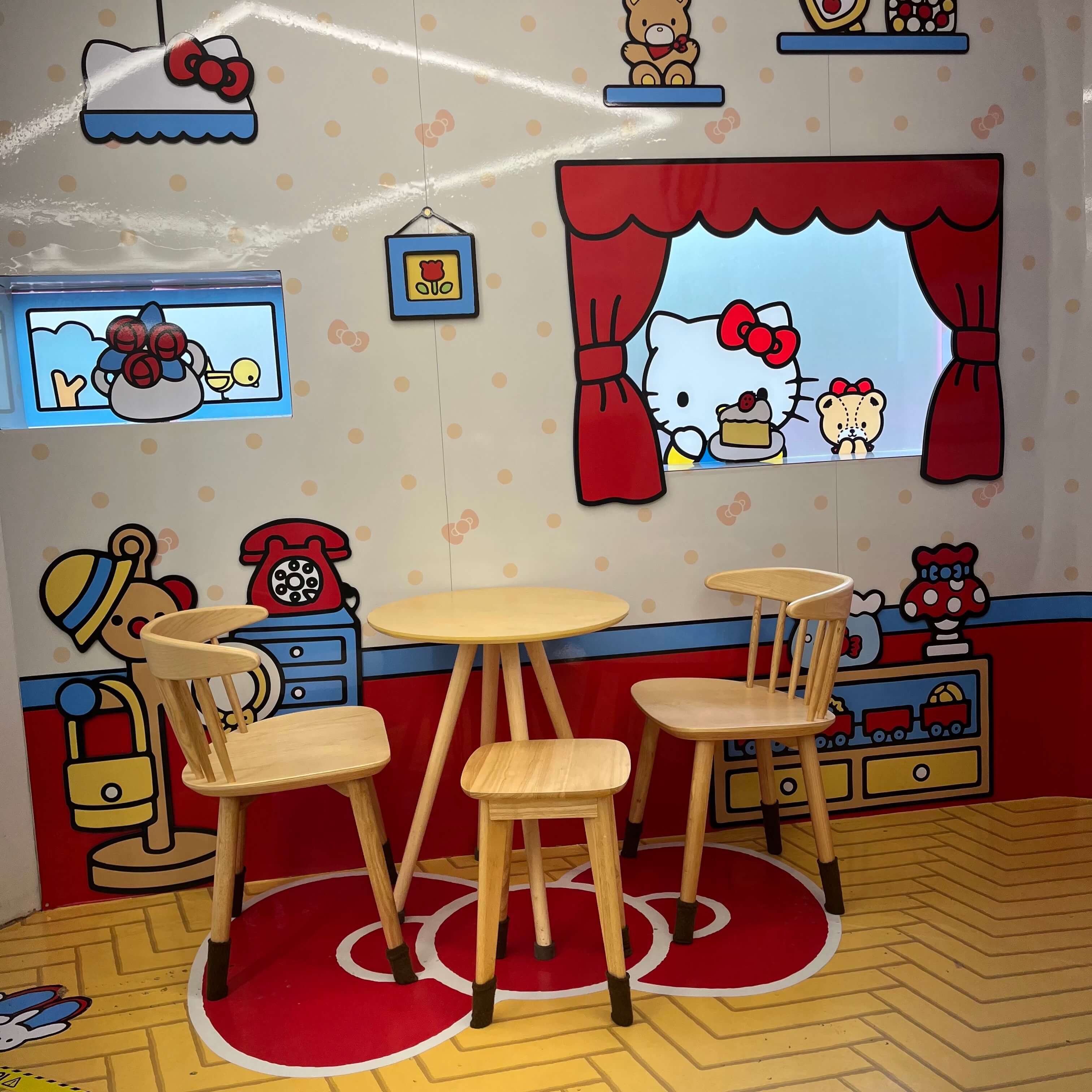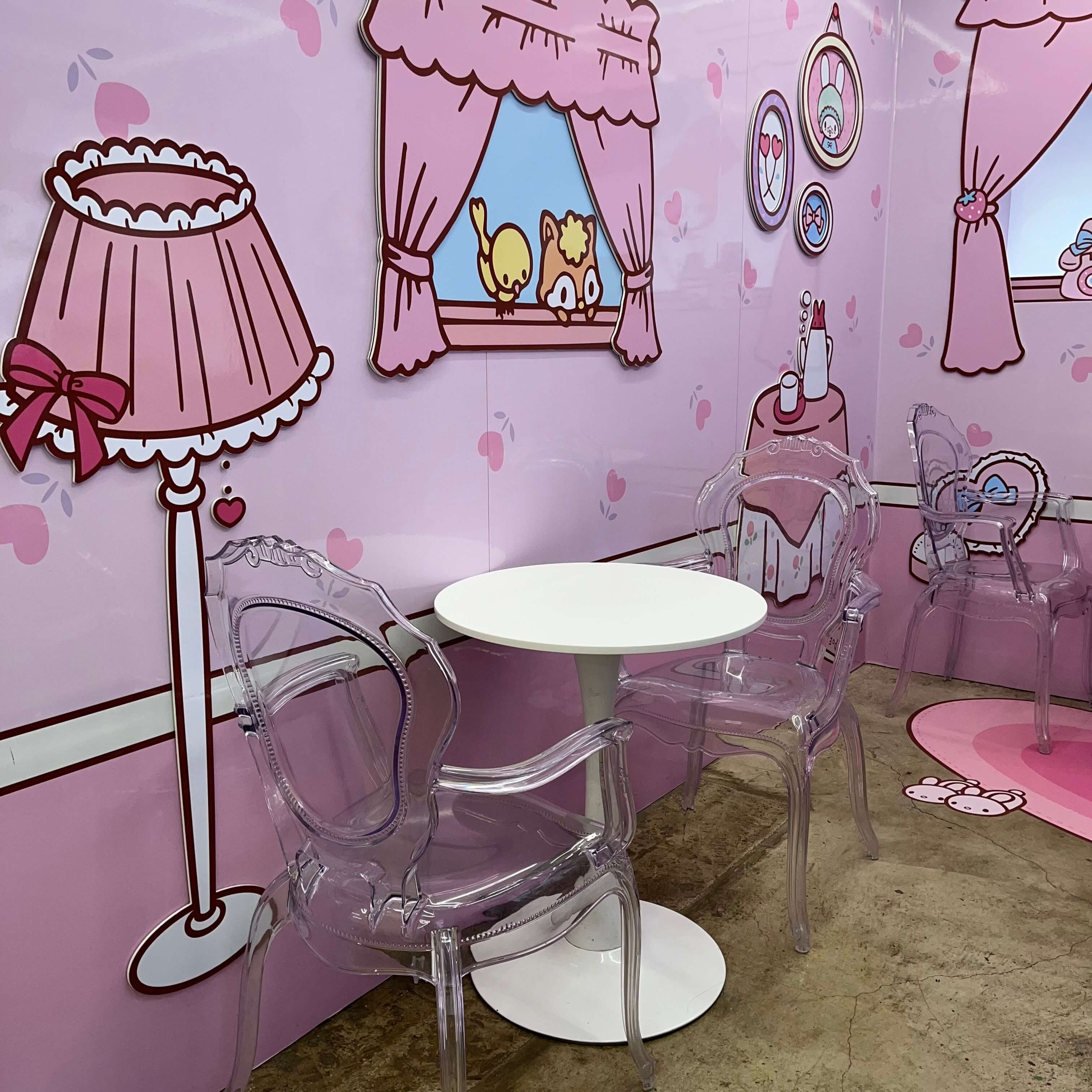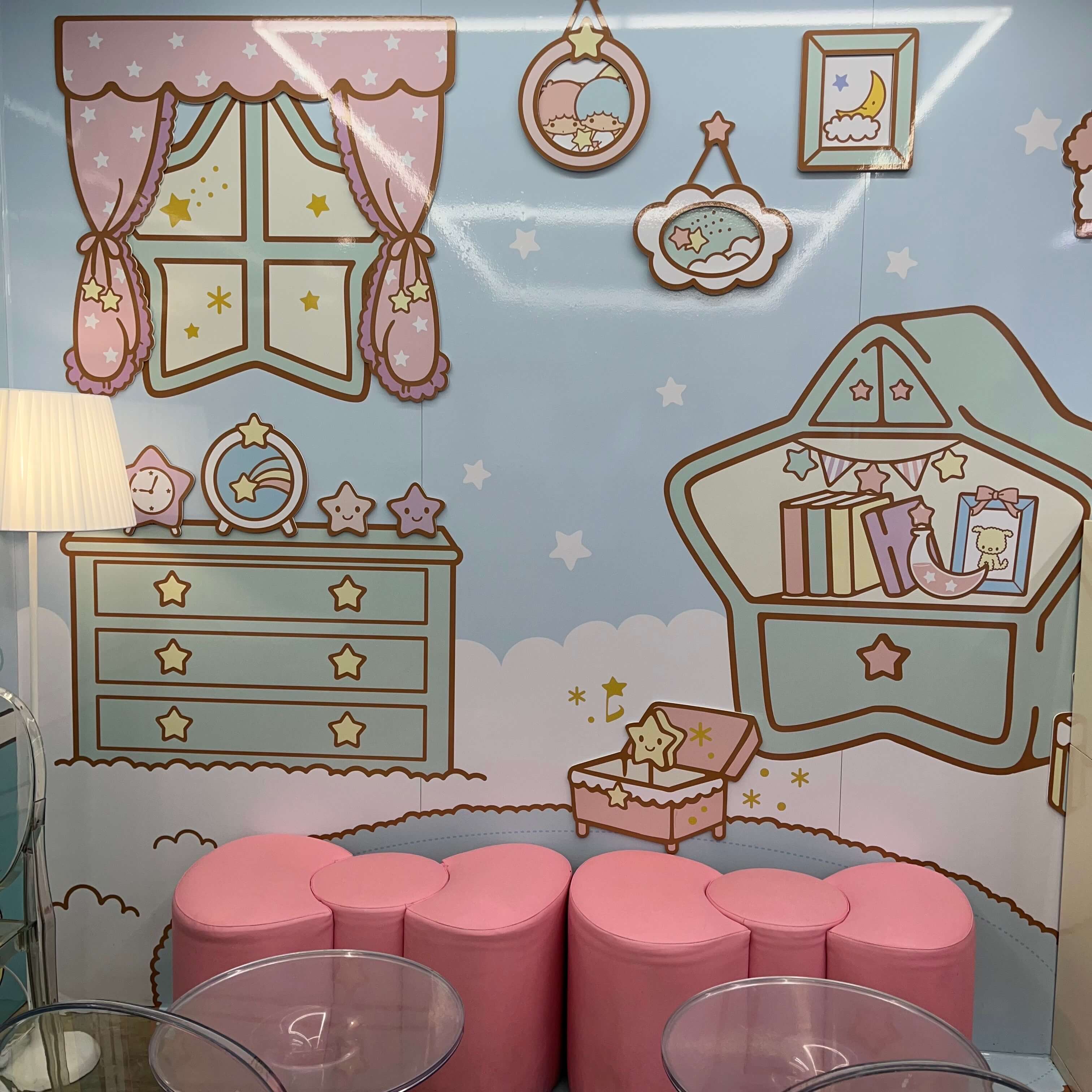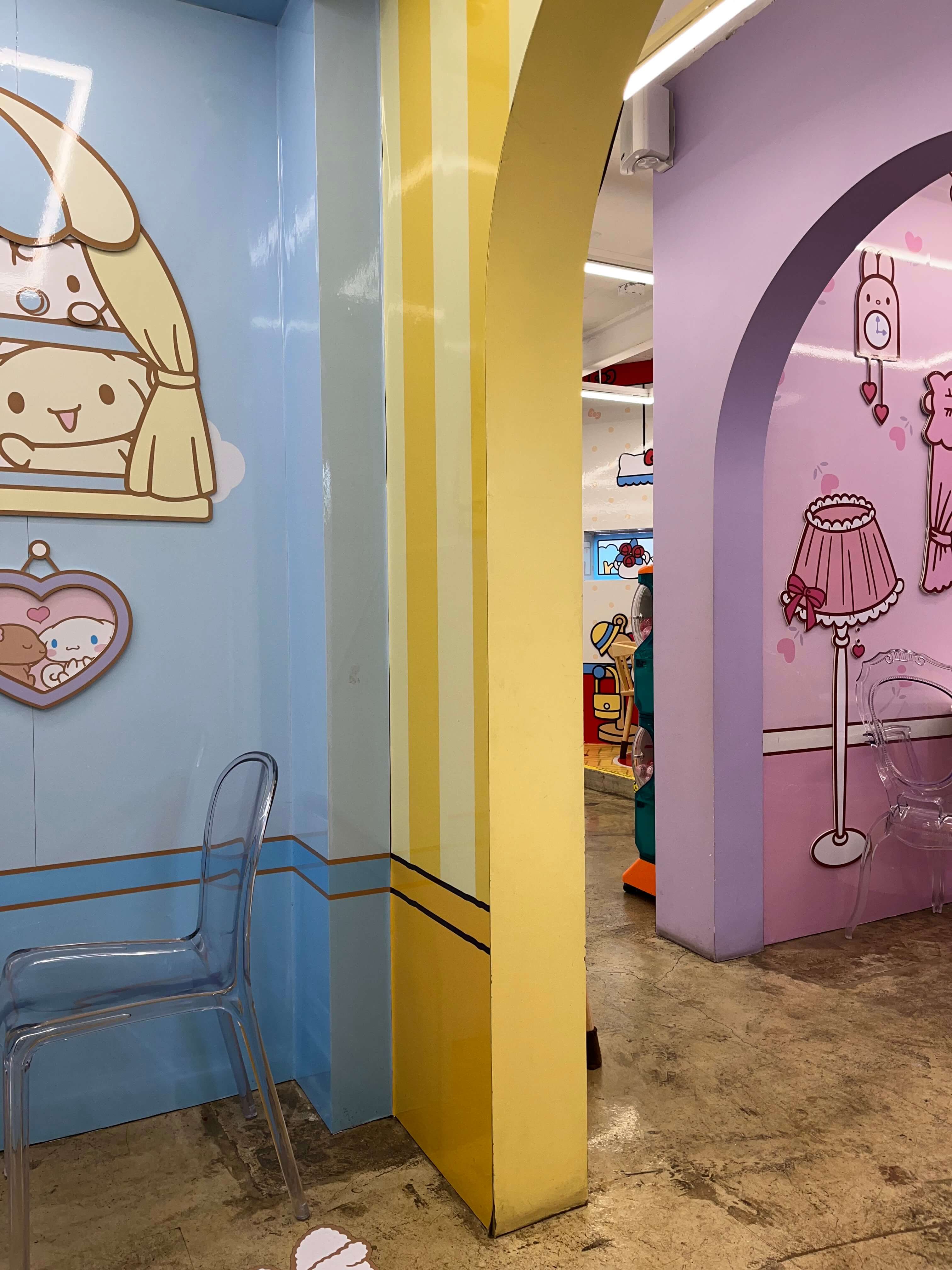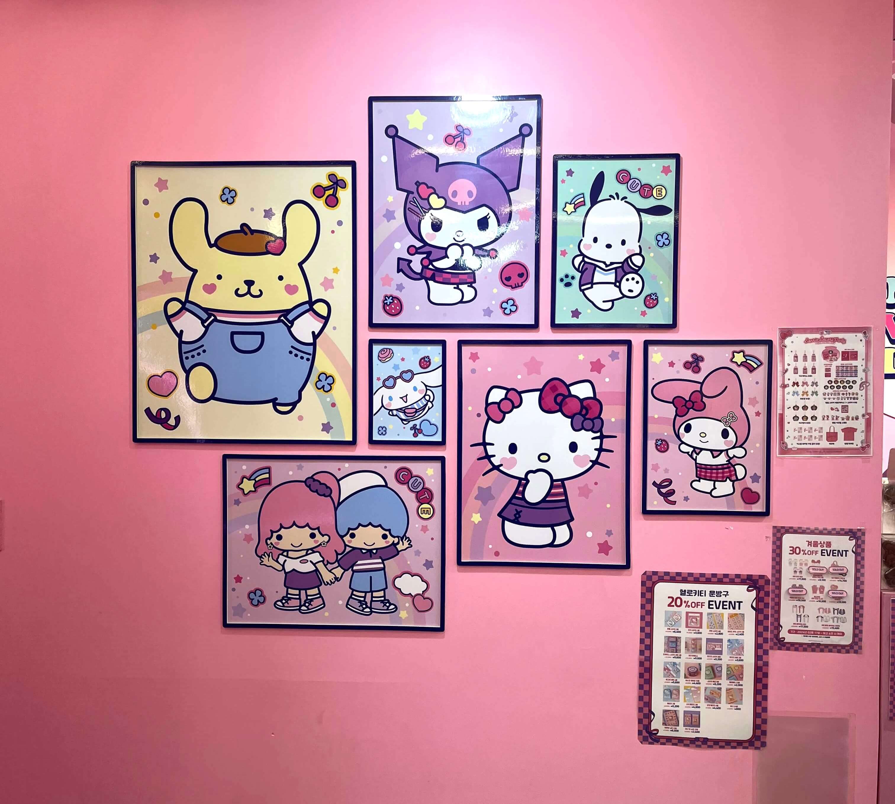 헬로키티, 폼폼푸린, 마이멜로디, 쿠로미, 포차코, 시나모롤, 리틀트윈스타를 콘셉트로 하는 작은 방들이 아기자기하게 꾸며져 있으면서 공간이 구분되어 있는데, 색감과 분위기, 그리고 귀여운 캐릭터들이 정말 너무 이쁠 정도로 조화롭습니다.