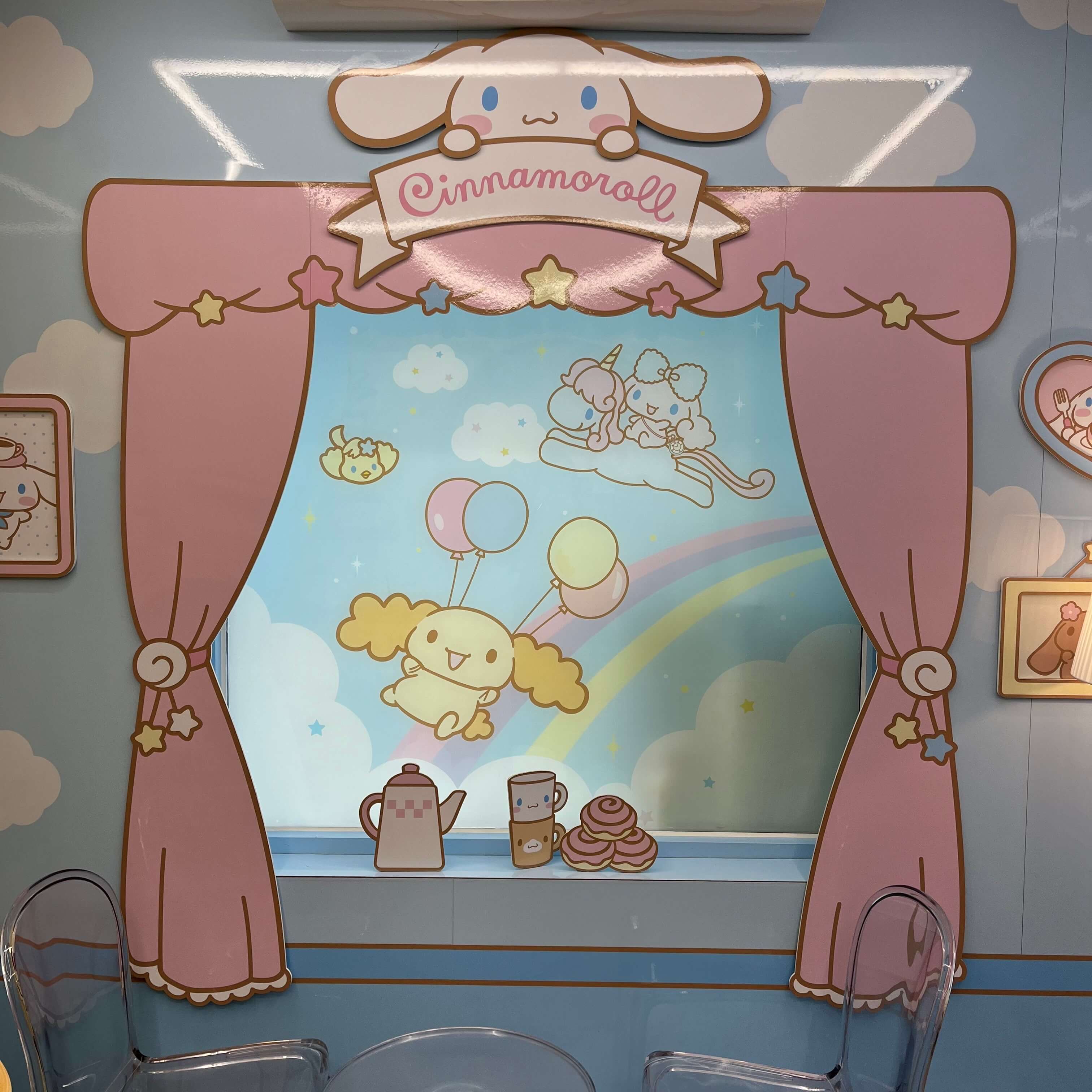 시나모롤 방의 다른 벽면 모습입니다. 무지개 타는 귀여운 시나모롤.