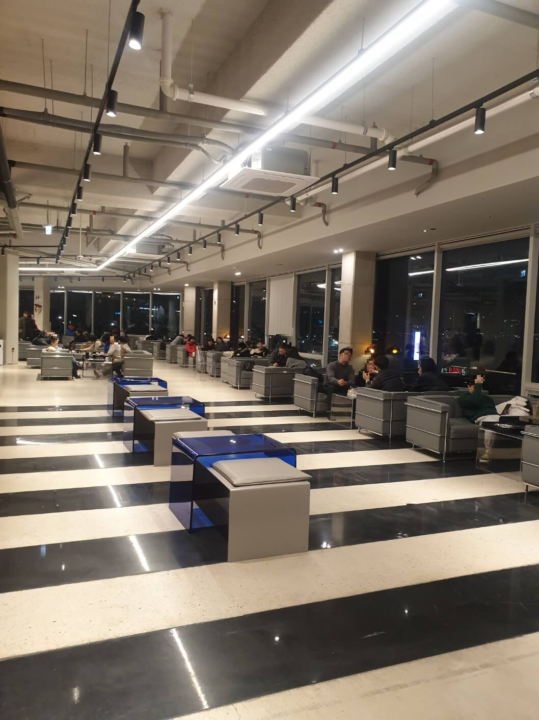 정말 큰 회의테이블 모양에서부터 아주 간단하고 모던한 파란색 테이블을 사이에 둔 의자 그리고 공연관람석을 본뜬 테이블 구성까지 다양한 볼거리를 제공해 줍니다.